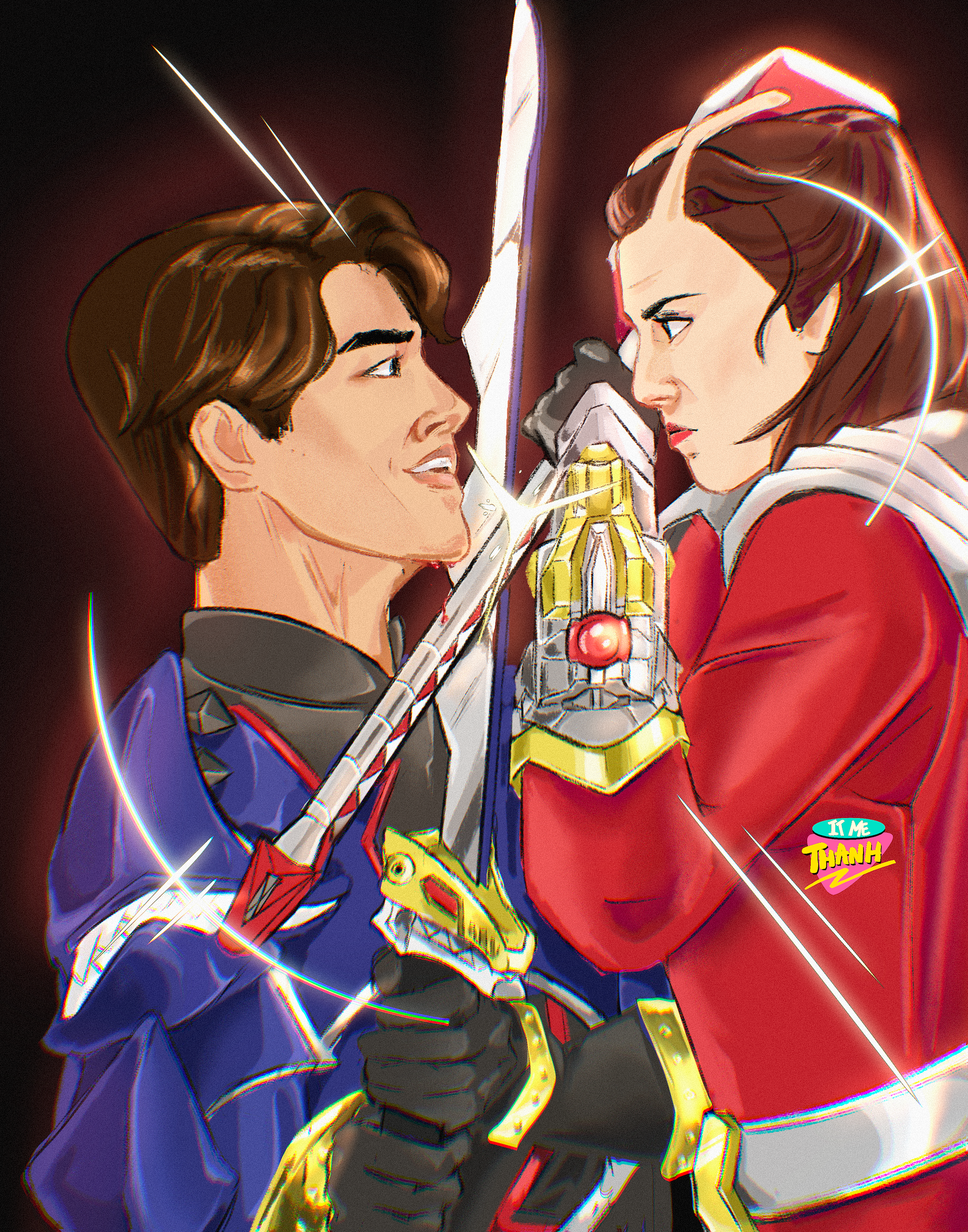 In this final season of a 30 year old franchise, we see the evil ranger trope return. 30 years ago, the beloved pink ranger sees her crush exhibit a change in personality without any agency in her own narrative. Fast forward to 2023, we have our first red ranger who is a woman. This poster is celebrating her leadership and her tenacity even when facing against her brainwashed boyfriend.