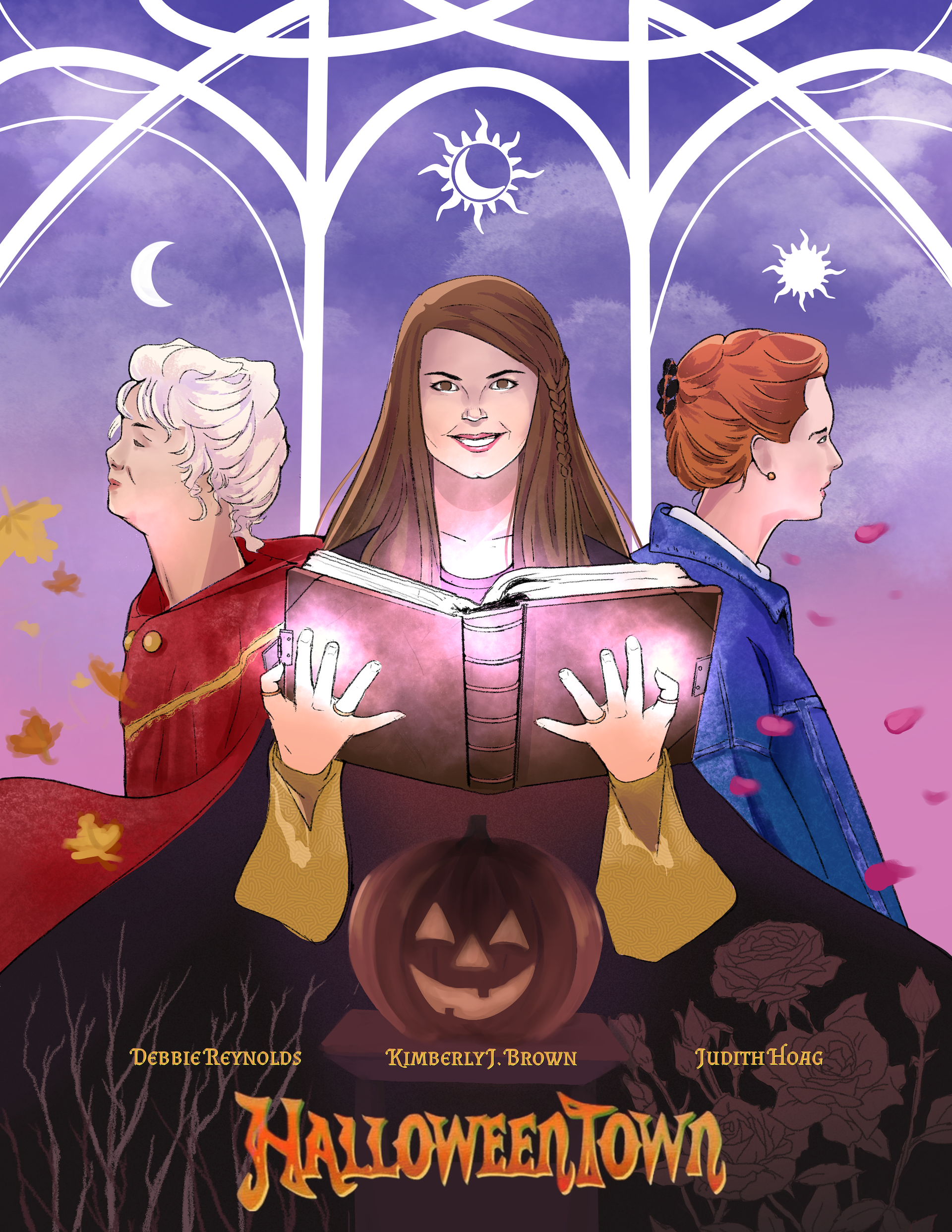 This poster highlights the Cromwell coven as the three faces of Hecate, the crone, the maiden, and the mother. Marnie sits in the middle as the combination of the magical and mundane realms. As every day is Halloween in the magic realm, Aggie is represented by the autumn leaves. Her eyes are closed not only to embody her supernatural intuition, but the headstrong nature of her personality.